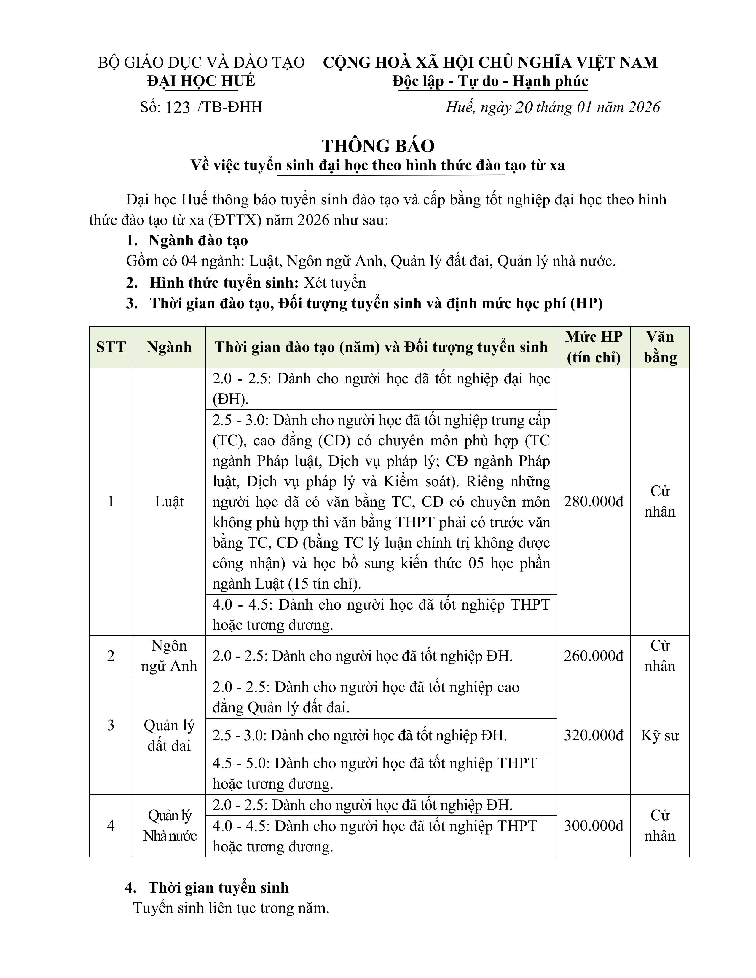 THÔNG BÁO TUYỂN SINH NĂM 2026